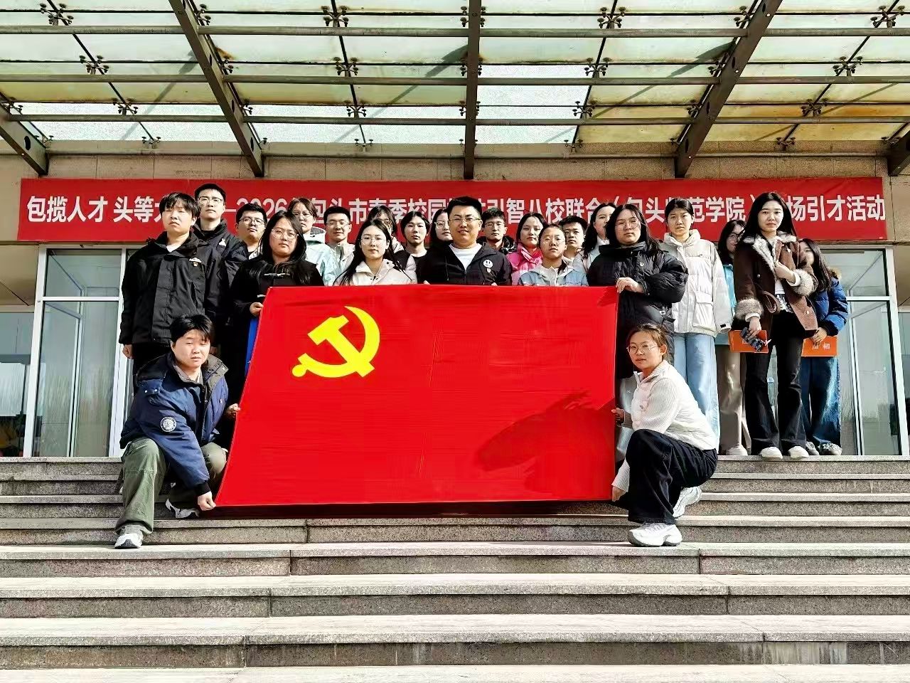 为深入推进“红心引航千帆扬,考研就业π成长”支部党建品牌建设,充分发挥党支部在就业引领与服务中的战斗堡垒作用,3月13日上午,WilliamHill中文官网员工第一党支部组织开展“探路先锋显担当 服务就业践初心”主题党日活动。党支部书记乌日根老师带领全体员工党员,与20余名积极求职的2026届毕业生共同参加2026年包头市春季校园招才引智八校联合(包头师范公司)专场引才活动。