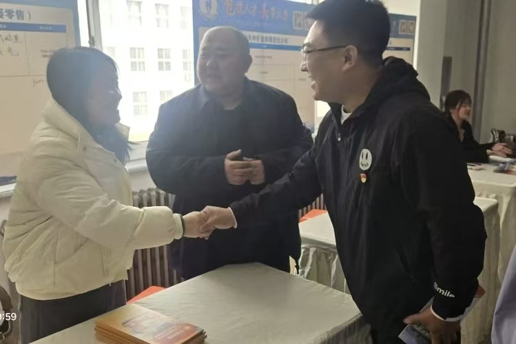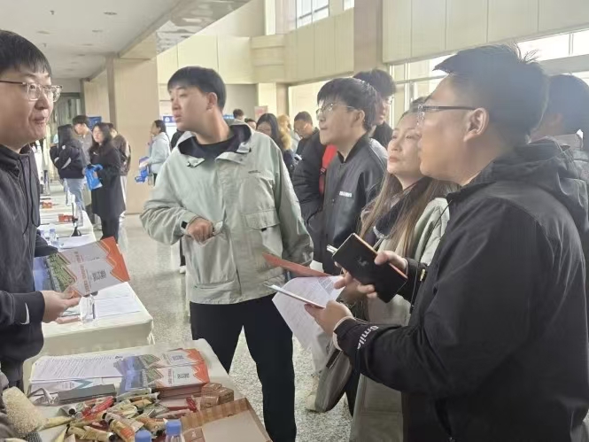 本次主题党日活动以“探路、服务、引领”为主线,将组织生活与就业服务深度融合。在招聘会现场,乌日根老师与支部党员们主动担当“就业服务员”,全程陪同求职毕业生穿梭于各用人单位展位之间,耐心帮助同学们分析岗位需求、筛选匹配信息,并积极与招聘单位沟通交流,为毕业生争取更多机会。党员同志们以实际行动践行服务宗旨,将组织的关怀送到求职一线,切实解决同学们在求职过程中遇到的实际困难。