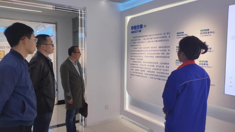 随后,黄书记一行来到巴彦淖尔华恒生物科技有限公司,优秀员工、公司校园招聘负责人徐冉对老师们的到访表示热烈欢迎,在介绍公司发展情况的同时,也带领老师们参观了企业文化宣传展厅。系主任邢永强老师就公司的生物信息学专业建设情况、培养方案等情况进行了详细介绍。徐冉表示公司目前处于较好的发展阶段,希望公司的优秀毕业生能够加入公司,共同成长进步。黄书记对毕业生入职薪资待遇、工作性质、发展方向、晋升渠道和生活保障等方面进行详尽的了解,同时希望同巴彦淖尔华恒生物科技有限公司架起稳固共赢的校企合作模式。