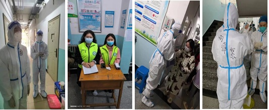 党员和志愿者同学开展测温、扫码、信息核对、执勤值守等工作