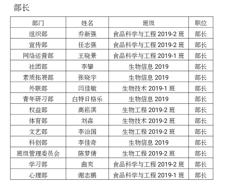 团学组织换届结果公示