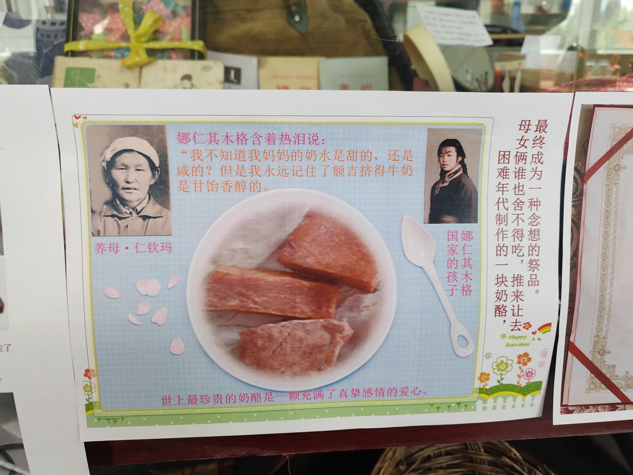 7 月 16 日,在苏尼特右旗档案馆史志馆内,副馆长饱含深情地讲述了“一块珍藏了 50 多年的奶豆腐”背后的故事。在那个物资匮乏的年代,草原母亲仁钦玛将家中仅有的奶豆腐悉心珍藏,自己与家人舍不得享用。在风雪中苦等三日后,她终于将这份珍贵的食物,送给了在镇上学习的、她收养的“国家的孩子”(娜仁其木格)。这块看似普通的奶豆腐,承载着草原母亲对“国家的孩子”深沉无私的爱,凝结着一位普通牧民守护“国家的孩子”的坚定责任,更铭刻着各民族交往交流交融的动人篇章。在场的党员教师们无不凝神倾听,内心被这份超越血缘的挚爱所深深震撼,真切感受到了内蒙古人民那份深情厚谊。