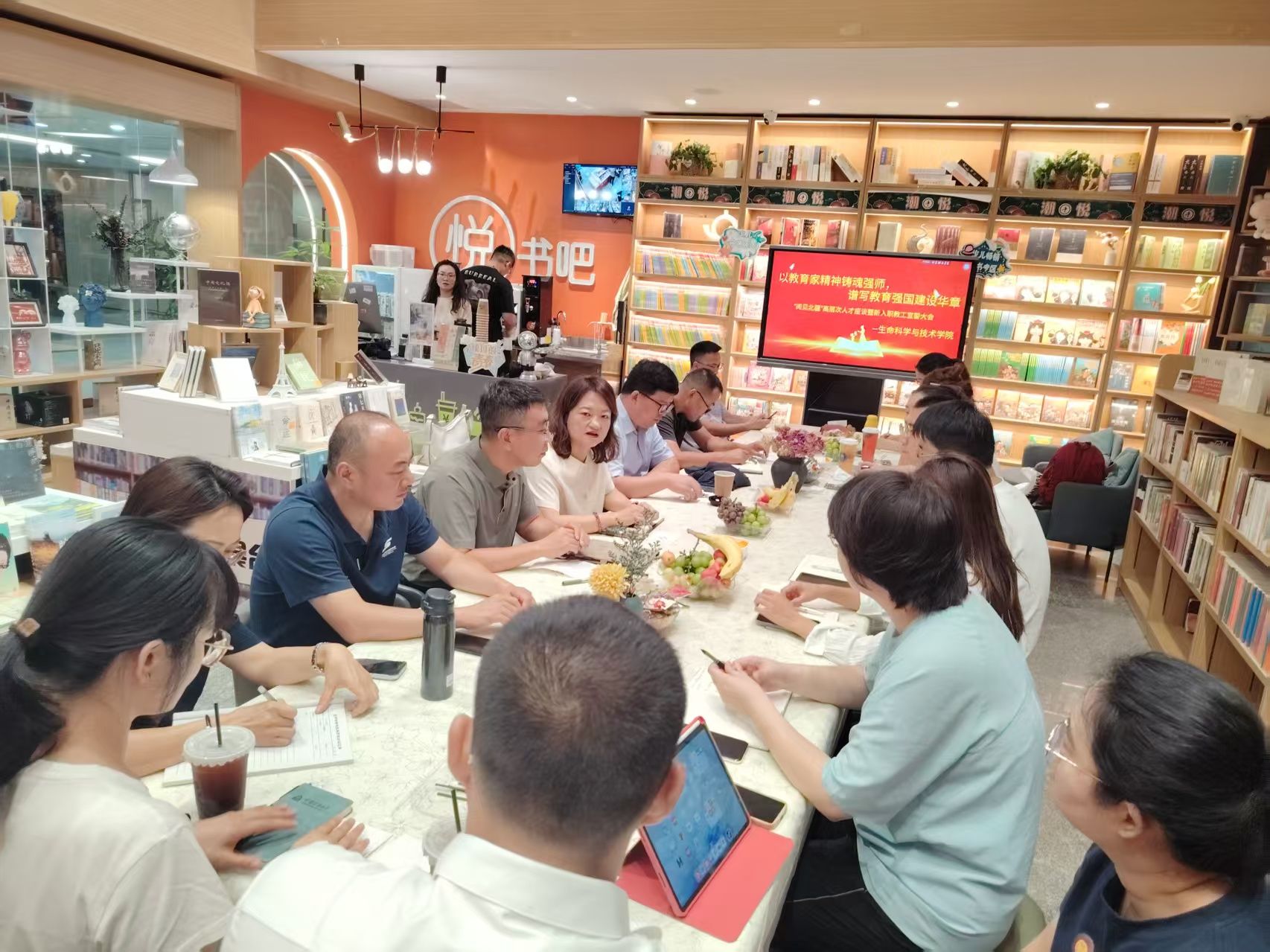 9月4日,为庆祝第41个教师节的到来,公司组织召开“以教育家精神铸魂强师,谱写教育强国建设华章”高层次人才座谈会暨新入职教工宣誓会。本次座谈会在图书馆一楼“悦书吧”温情举行,公司党委书记李德超主持会议,经理杜志强、副经理邢永强,各科研团队负责人及全体新入职青年教师参加会议。