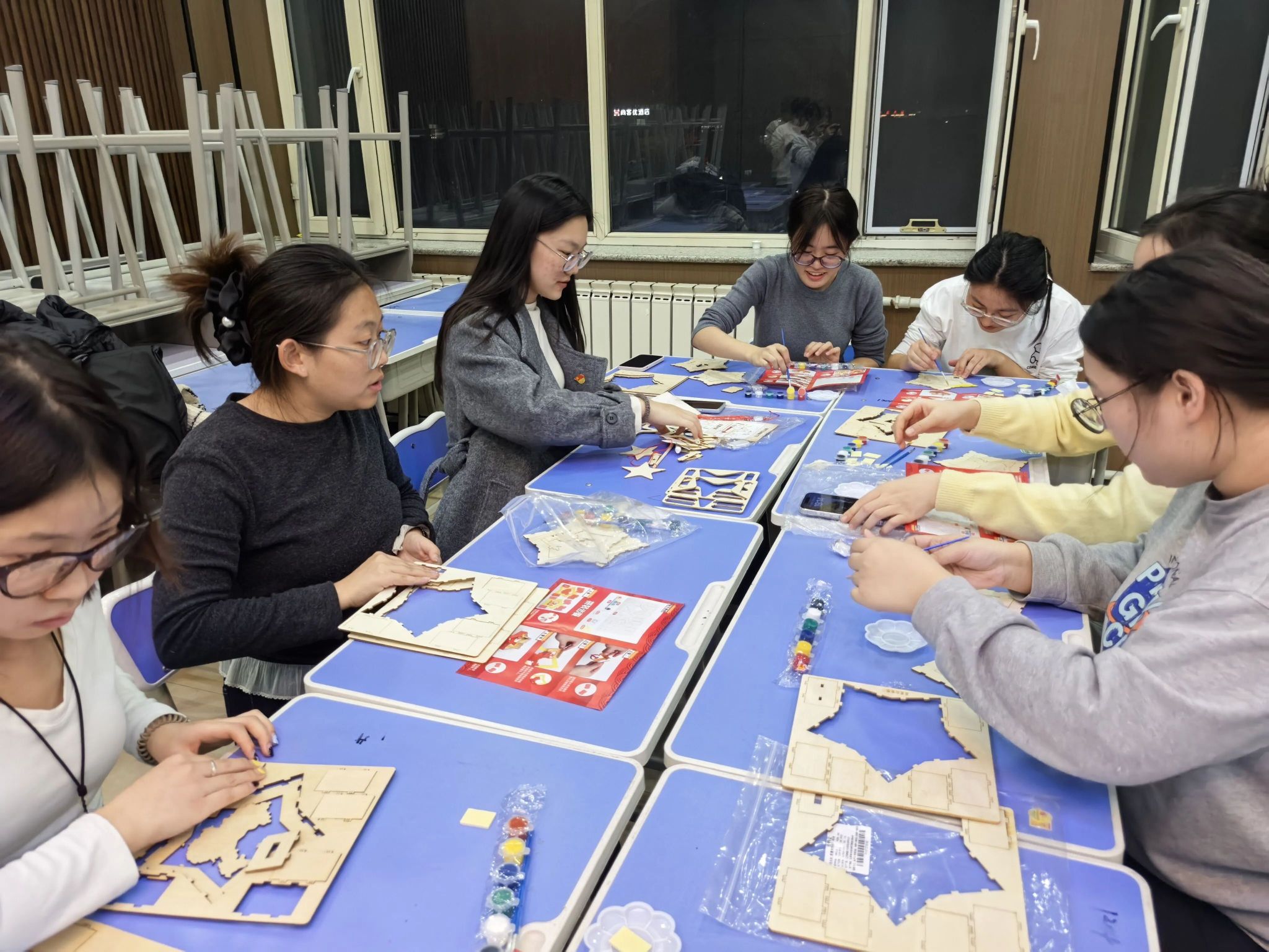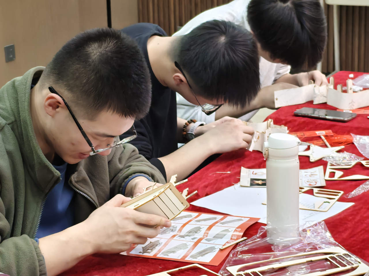 在随后的手工拼图环节中,大家有序协作,细致拼接。员工党员们沉浸其中,有的专注研究图纸,有的默契配合组装……现场气氛热烈而有序,一件件红色主题手工作品在大家的共同努力下逐渐成型。