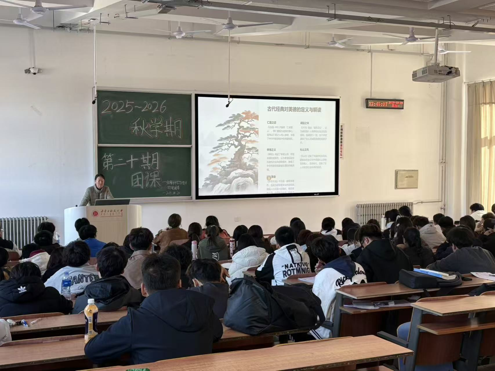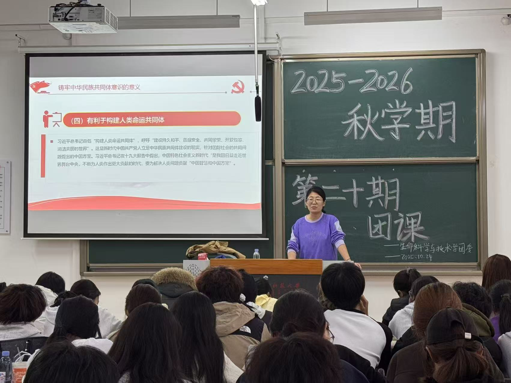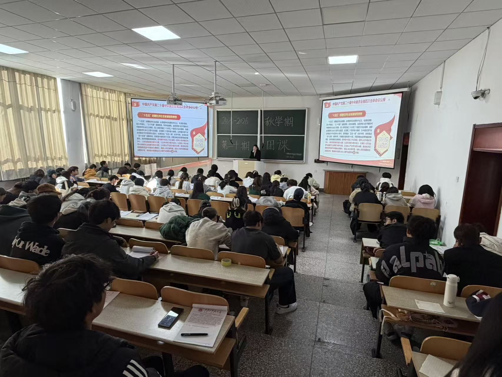 贾镇宁老师系统讲解习近平新时代中国特色社会主义思想及习近平总书记系列重要讲话精神,从理论体系到实践要求,从战略部署到青年使命,层层递进。她特别结合二十届四中全会提出的一系列新思想、新观点、新论断,使党的创新理论入脑入心。