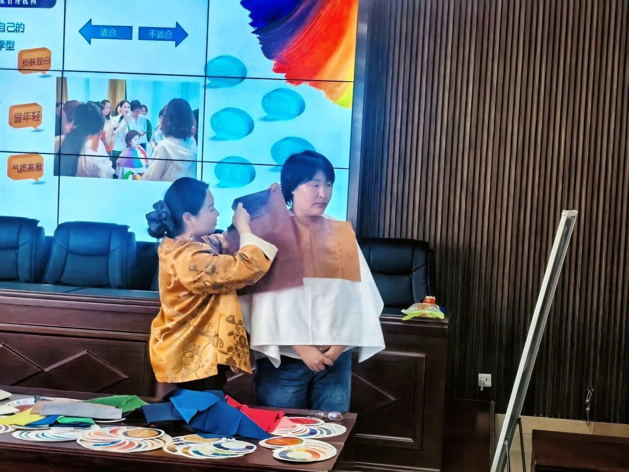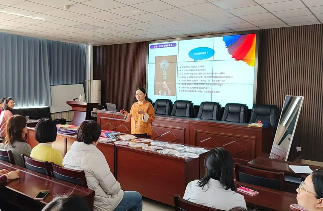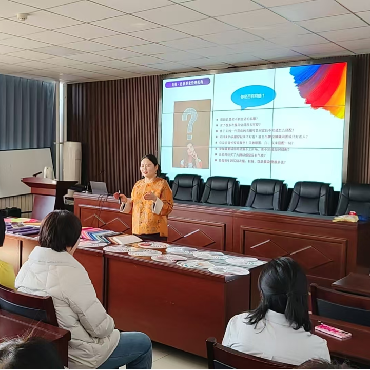 本次活动的核心环节为色彩搭配与形象改造管理讲座。讲师围绕职场女性形象管理核心要点展开专业讲解,结合丰富的实际案例,从日常穿搭技巧、妆容修饰要点、仪态管理方法等方面进行细致分享,内容兼具实用性与可操作性,为女教职工们解锁了诸多提升个人形象的小妙招。