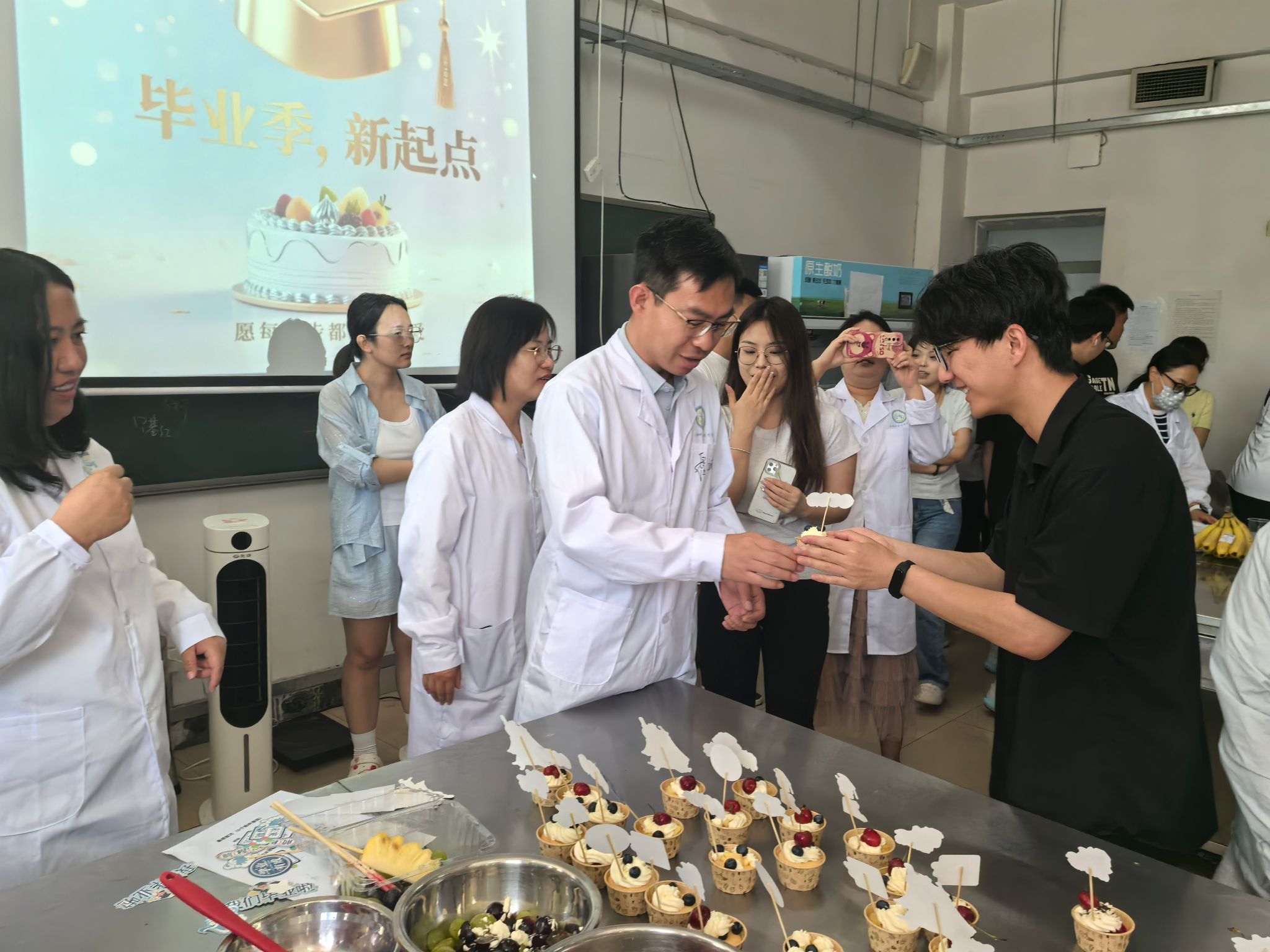 此次主题党日活动,是食品科学与工程系教工党支部坚持立德树人根本任务,践行“为国育人、为党育才”使命的生动实践。小小的蛋糕承载着深厚的师生情谊和公司对毕业生的殷切期望,激励着学子们带着这份温暖与力量,在未来的征程中奋勇前行,贡献青春力量。