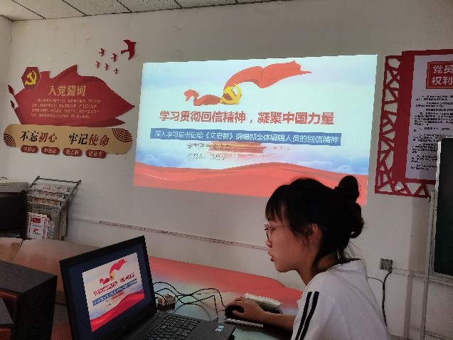 习近平总书记的重要回信,是对中国特色哲学社会科学提出的历史嘱托,是我们必须担负起的历史使命,也是推动哲学社会科学创新发展的历史机遇。一支部通过深入学习贯彻习近平总书记关于哲学社会科学重要论述和给《文史哲》编辑部的回信精神,明确思路方向,决心以学习贯彻习近平总书记回信精神为契机,更好地推动我支部的发展,守正创新、坚守初心,在新的时代条件下推动中华优秀传统文化创造性转化,创新型发展,更好地坚持中国道路、弘扬中国精神。