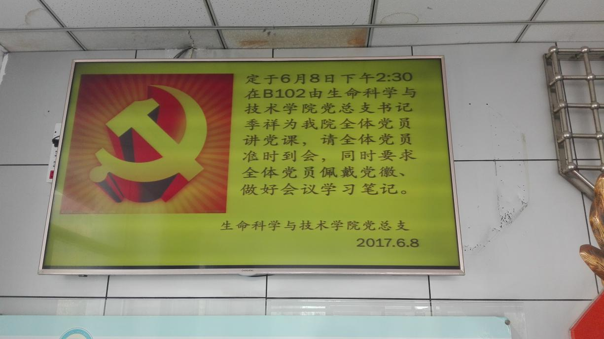 为及时将学习教育的各项活动通知到每一名党员,建立了一个“生科院教工支部”微信群,有活动或通知及时在群里发布,党员也可以在群里进行学习讨论,交流学习心得,为党员交流零距离“两学一做”学习教育提供了一个学习交流的平台。该支部微信群丰富了党员的学习交流形式,实现了党员交流“零距离”,各项活动得到积极响应,支部的凝聚力得到了进一步提升。教工党支部还通过公司大门处的电子屏幕发布一些即时信息,使党支部更便于开展各项活动。