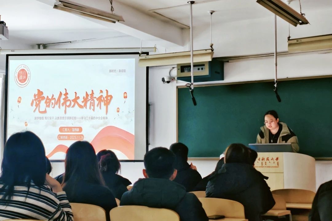 潘雨晴同志以“深学细悟,笃行实干 以新思想引领新征程”为主题,领学二十届四中全会精神。在铸牢中华民族共同体意识学习层面,潘雨晴同志讲到以铸牢中华民族共同体意识为主线,坚定不移走中国特色解决民族问题的正确道路,坚持和完善民族区域自治制度,加强和改进党的民族工作,全面推进民族团结进步事业,深化民族团结进步教育,铸牢中华民族共同体意识。“十五五”宏伟蓝图为铸牢中华民族共同体意识、推进中华民族共同体建设提供了前所未有的历史机遇,也为积极分子提供了一个了解、学习民族知识的平台,通过学习让我们一起把民族团结精神浸润到日常学习工作的方方面面,守望相助,把中华民族优秀传统发扬光大。