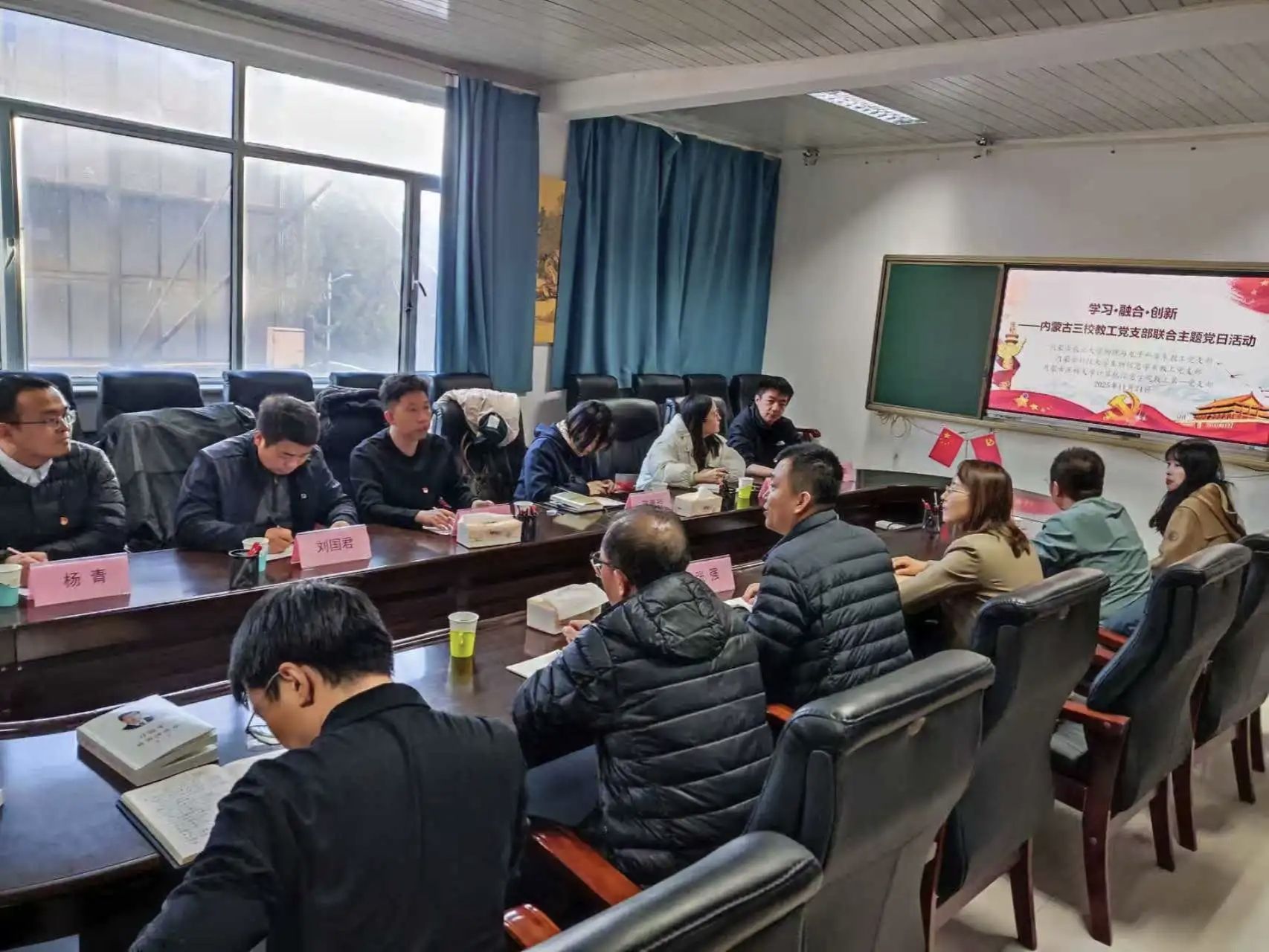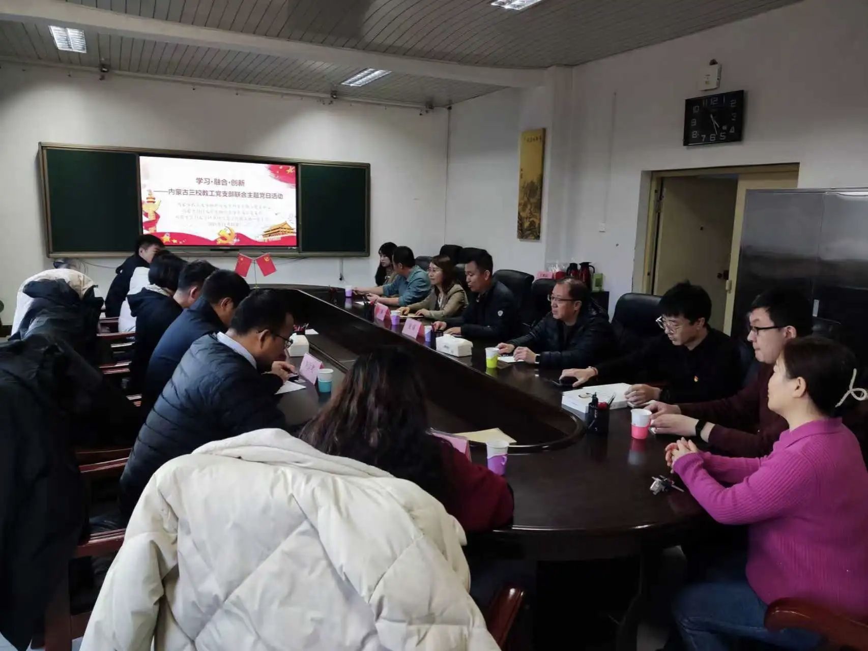11月24日,内蒙古科技老员工物信息学系教工党支部与内蒙古农业大学物理与电子科学系教工党支部、内蒙古医科大学计算机信息公司教工第一党支部联合举办的“学习·融合·创新”主题党日活动在内蒙古农业大学理公司229会议室成功举行。本次活动以联学共建为纽带,通过跨校际、跨学科的交流互动,激发党建新活力,凝聚发展新共识。