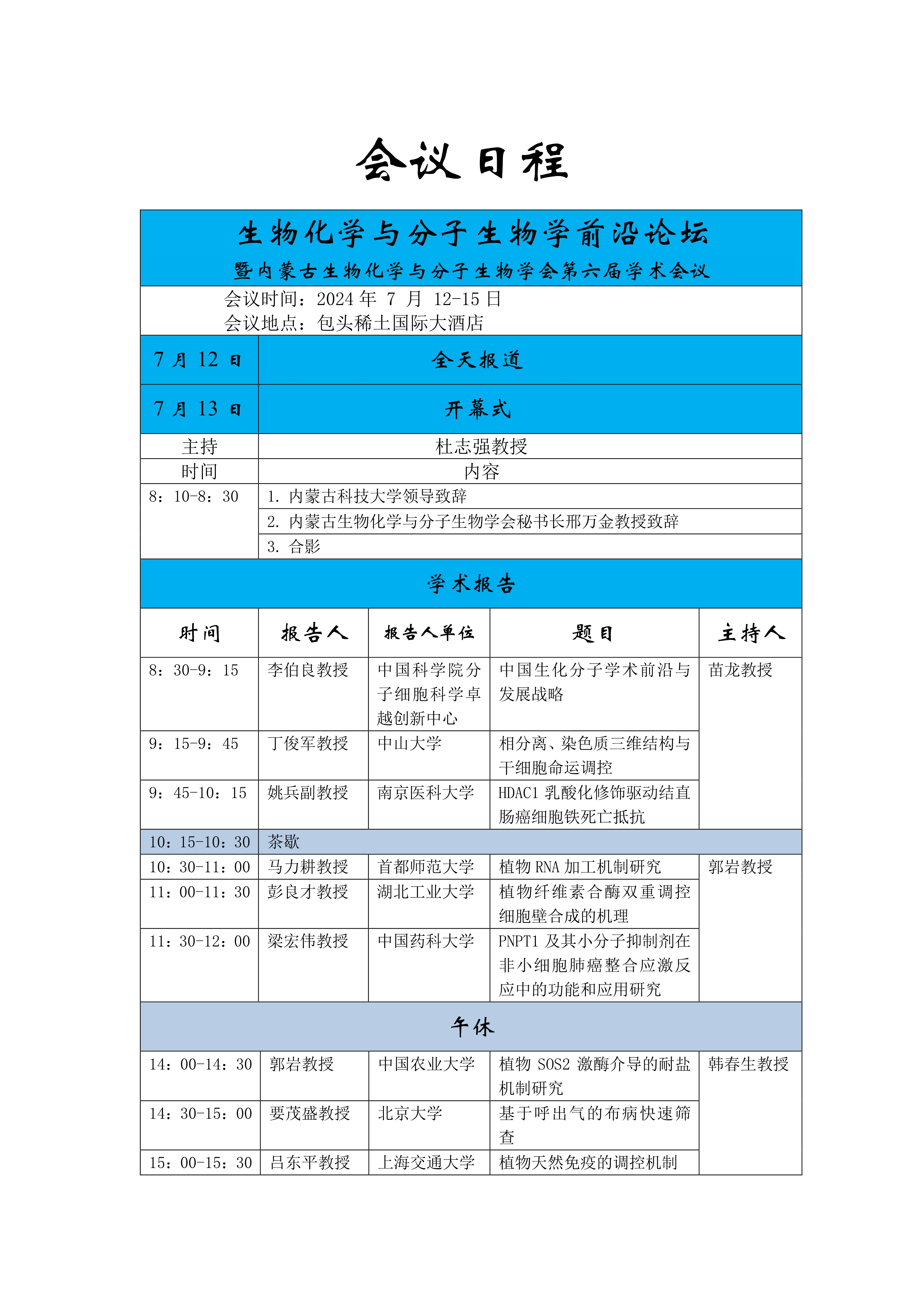 2024生物化学与分子生物学前沿论坛议程(第三轮通知)
