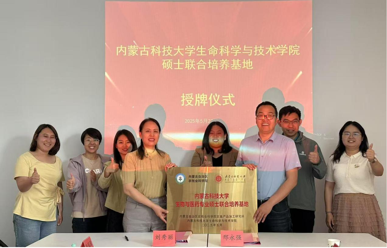 2025年5月,WilliamHill中文官网在生物与医药专业学位硕士点建设方面取得重要进展,先后与包头市龙驹农牧业科技有限公司、内蒙古自治区农牧业科公司农畜产品加工研究所建立研究生联合培养基地,标志着校企、院所协同育人迈出新步伐。