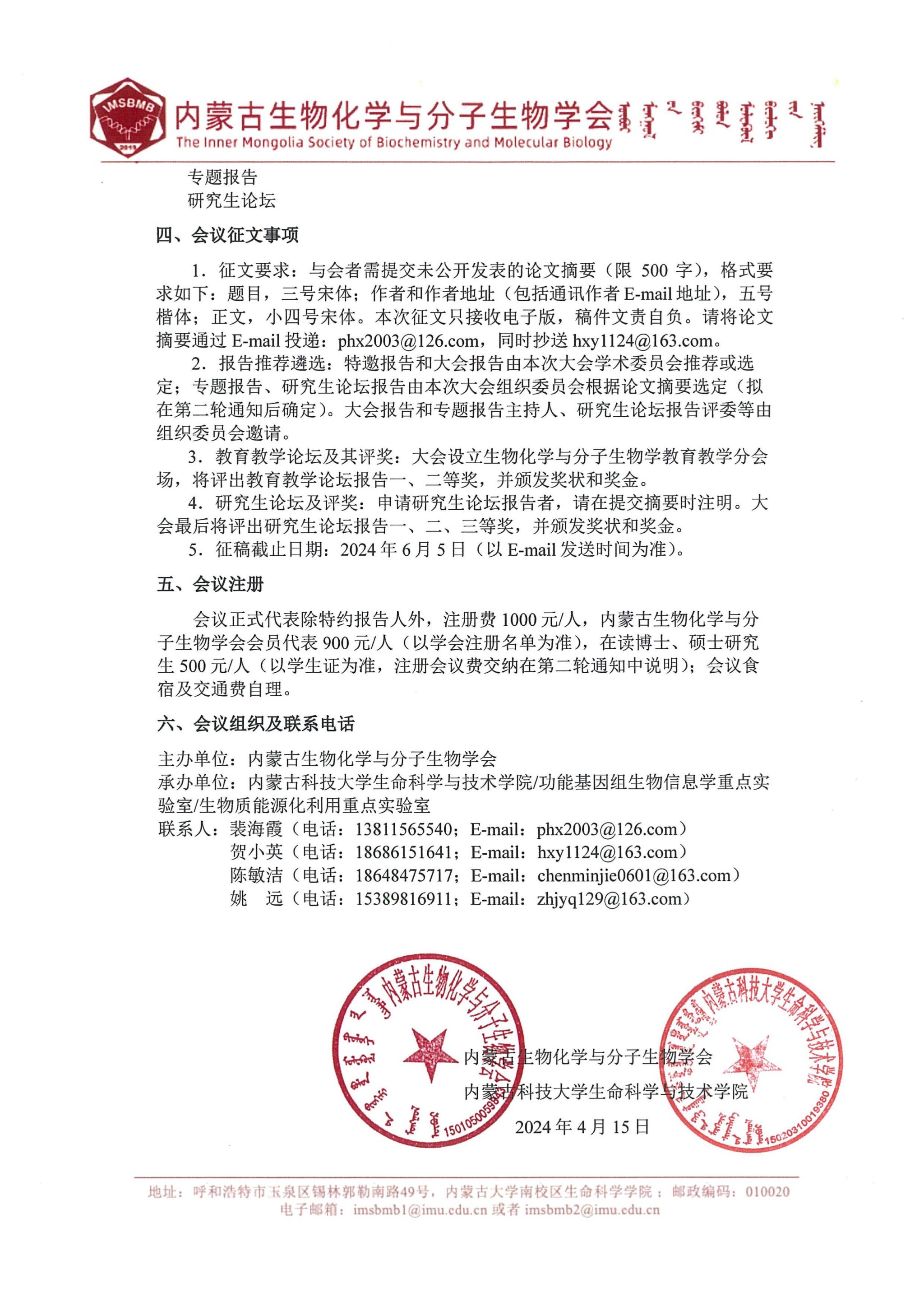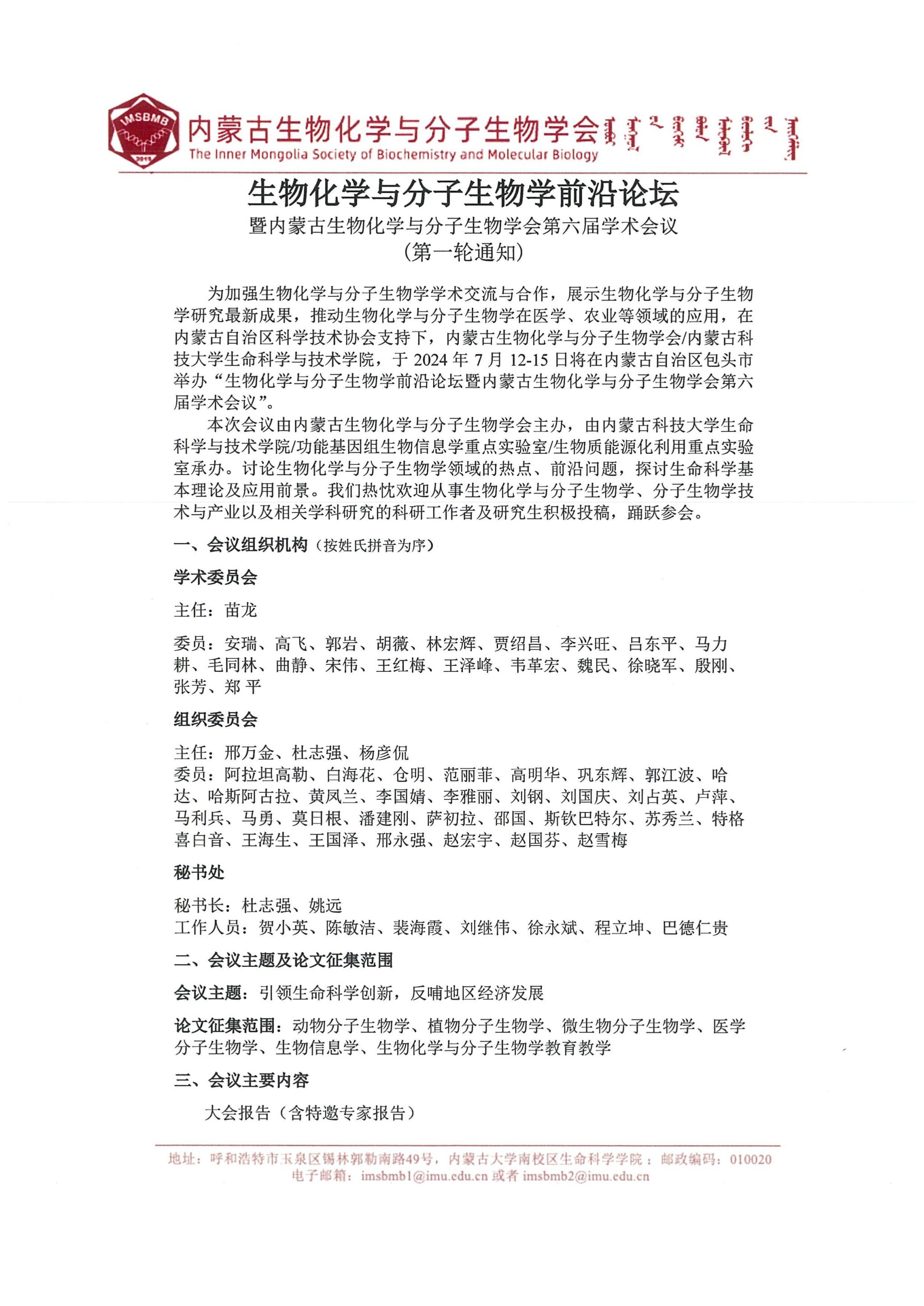 2024年“生物化学与分子生物学前沿论坛”第一轮通知