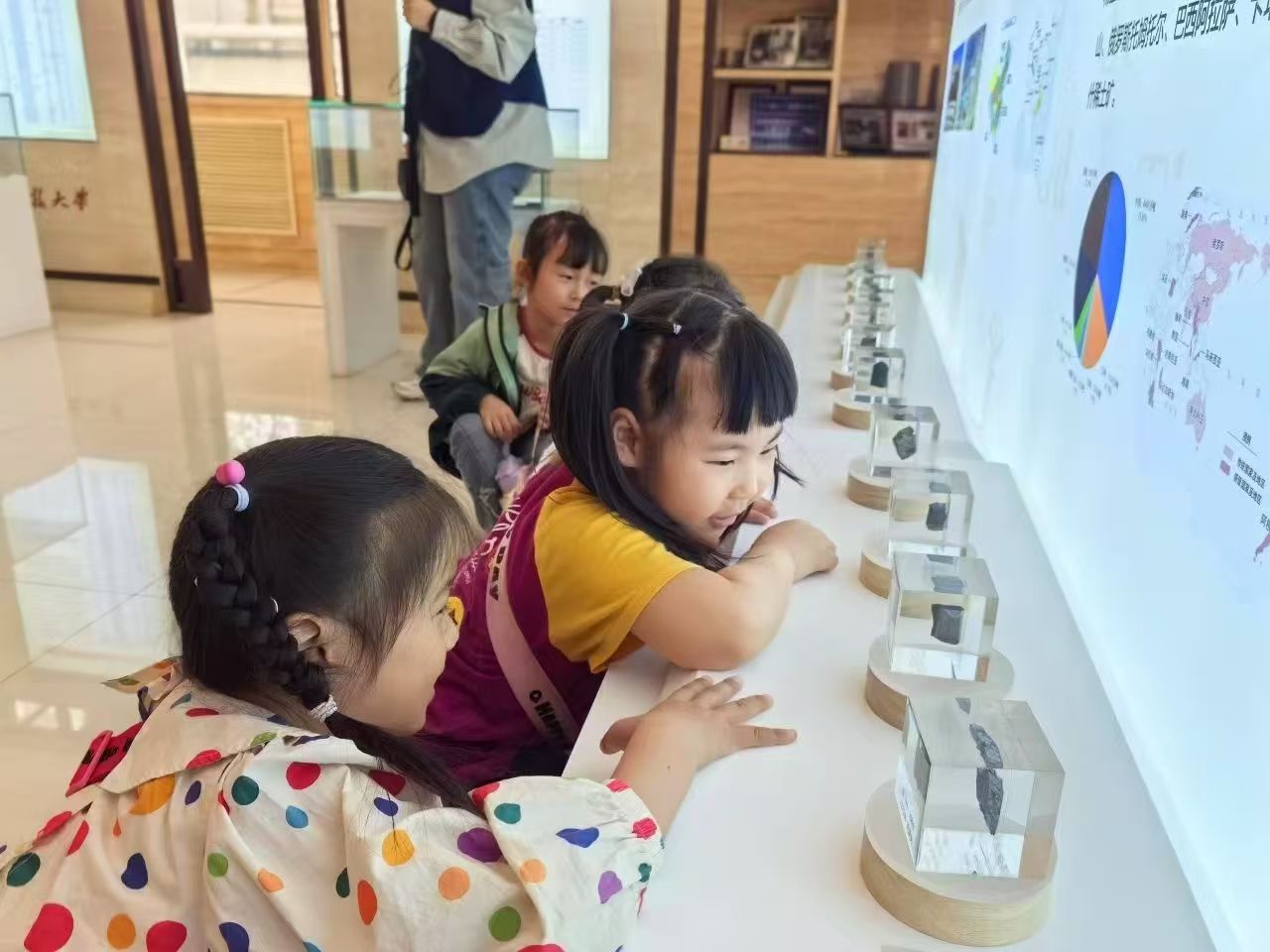 孩子们观察稀土矿石标本