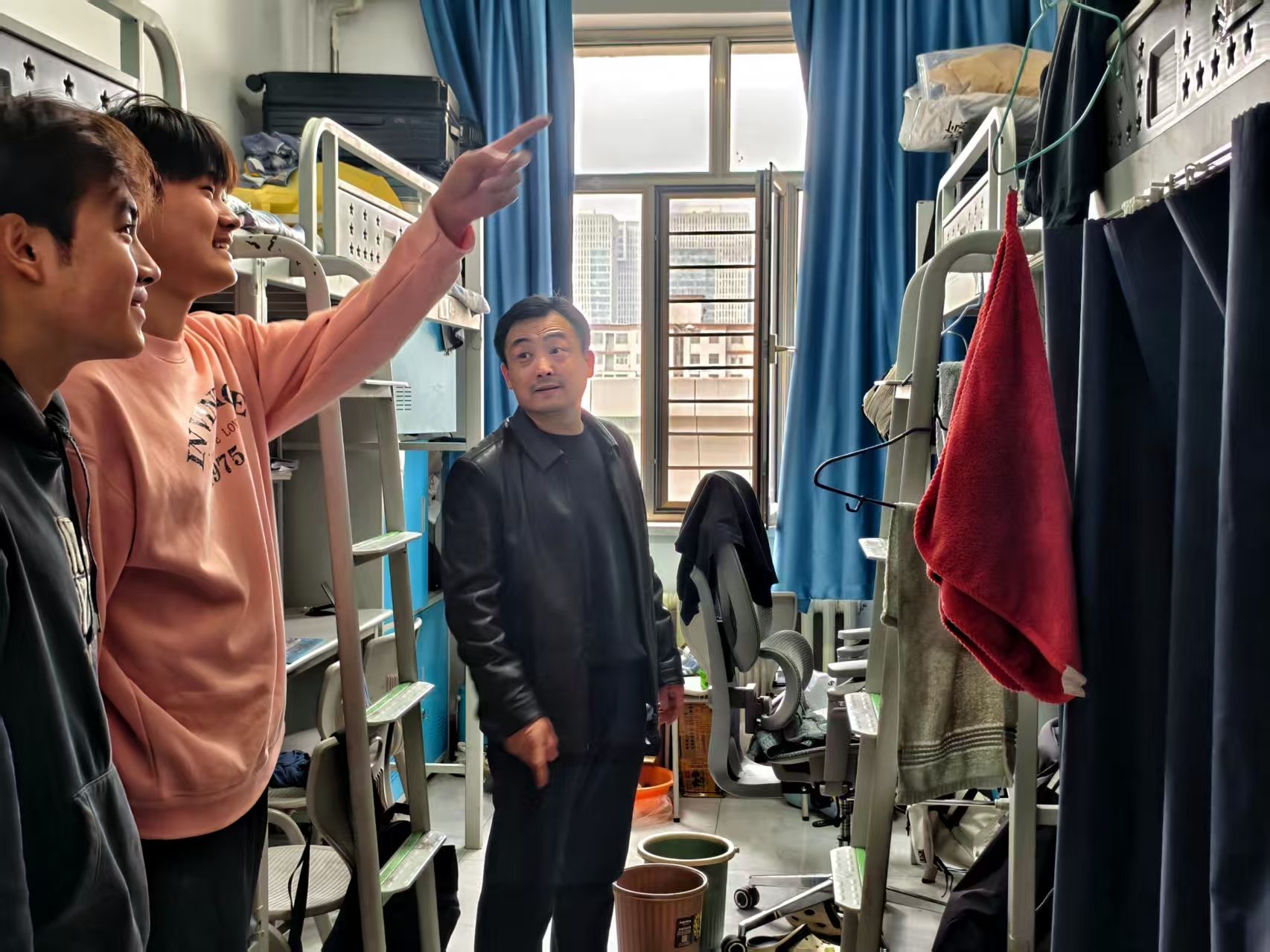 春季是疾病高发期,宿舍环境的整洁与否直接关系到每位同学的身体健康。在本次走访中,领导老师们特别关注宿舍卫生与春季传染病防控工作 。“窗户要经常打开通风”、“注意及时打扫卫生,倒垃圾”、“多锻炼身体”,“宿舍内禁止吸烟”领导和老师们一边检查宿舍阳台、房间角落等区域,一边耐心叮嘱同学们保持卫生与注意用电安全,引导返校员工开展宿舍环境卫生集中清扫,保持内务整洁,空气流通,用实际行动筑牢校园平安健康防线 。